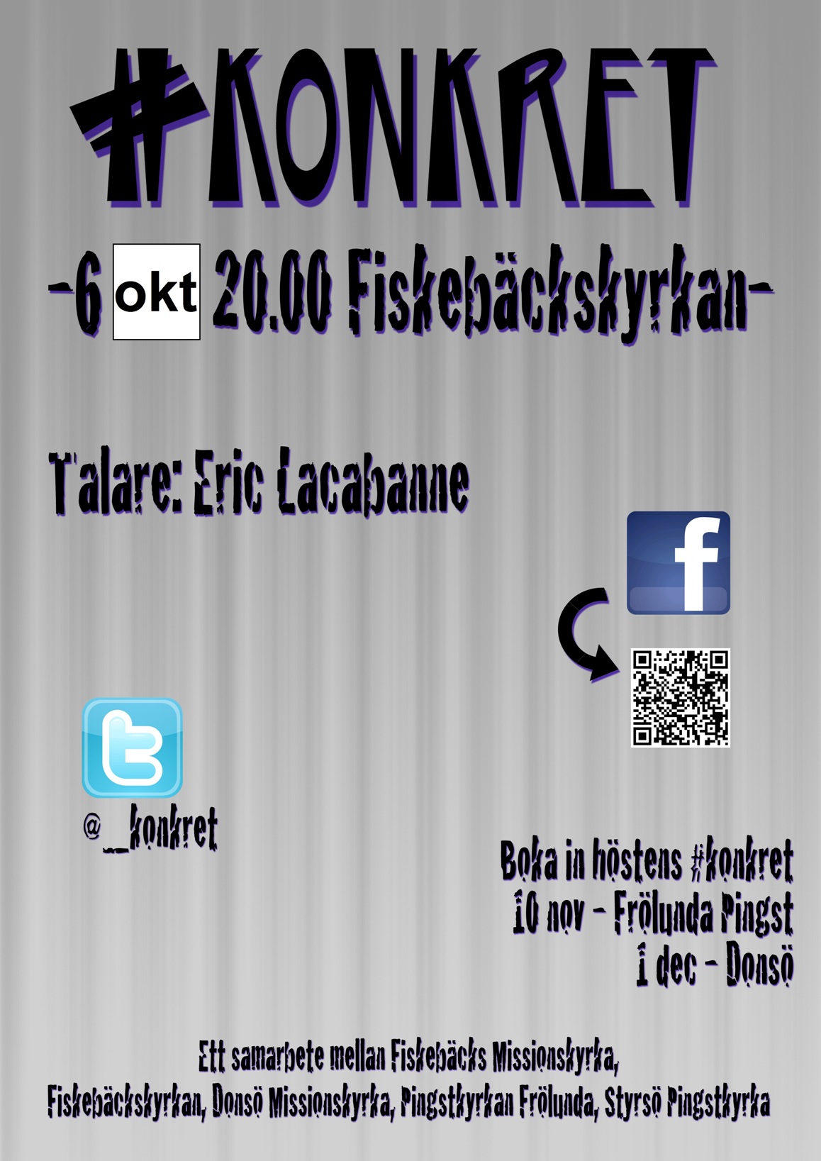 Boka in höstens #konkret: 10 november i Frölunda Pingstkyrka, 1 december i Donsö Missionskyrka.