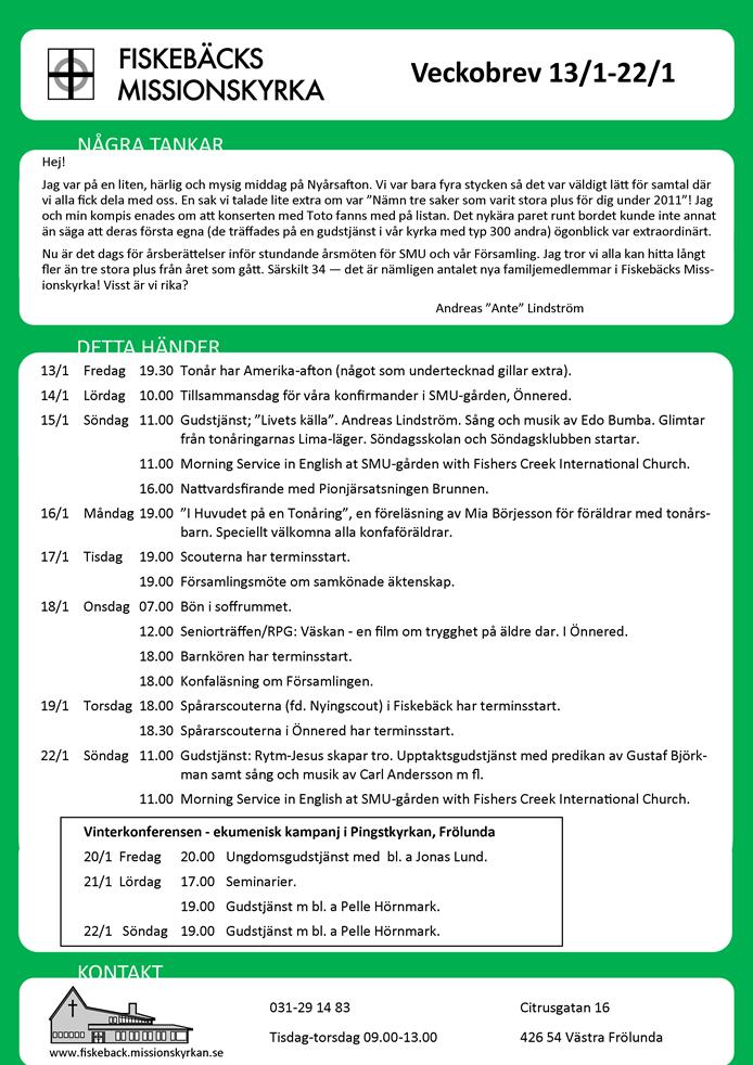 Här presenteras de veckobrev som församlingen ger ut varje vecka.